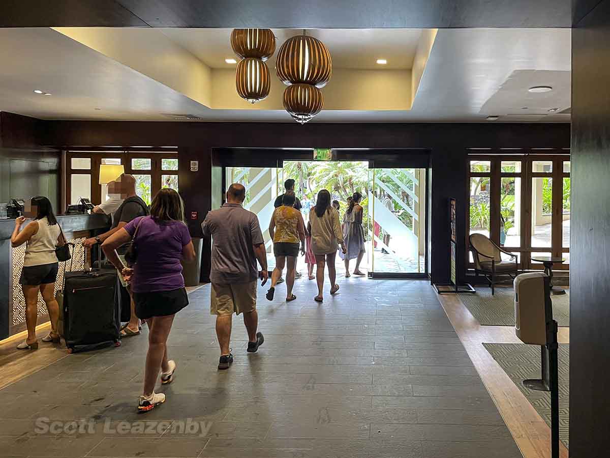 Guests of the Ali’i Tower (that’s me!) have their own dedicated check-in area in the lobby of that building. The problem was finding it. They don’t make it easy.