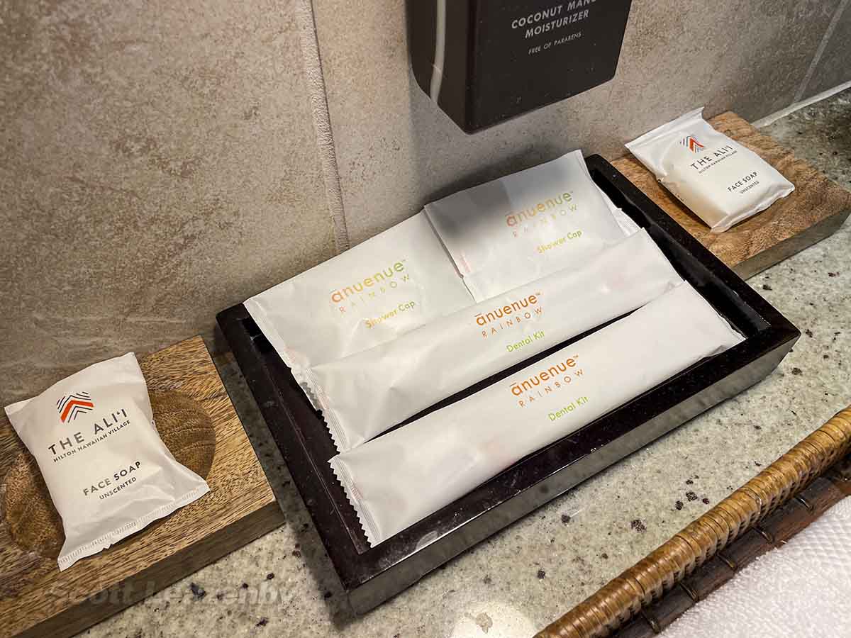 This was easily one of the largest bathrooms I’ve ever had a hotel in Waikiki. Just like the rest of the room, it was slightly out of date. It was very well stocked though – you won’t have to worry about bringing any shampoos, conditioners, or even toothbrushes along. They’ve got you covered.
