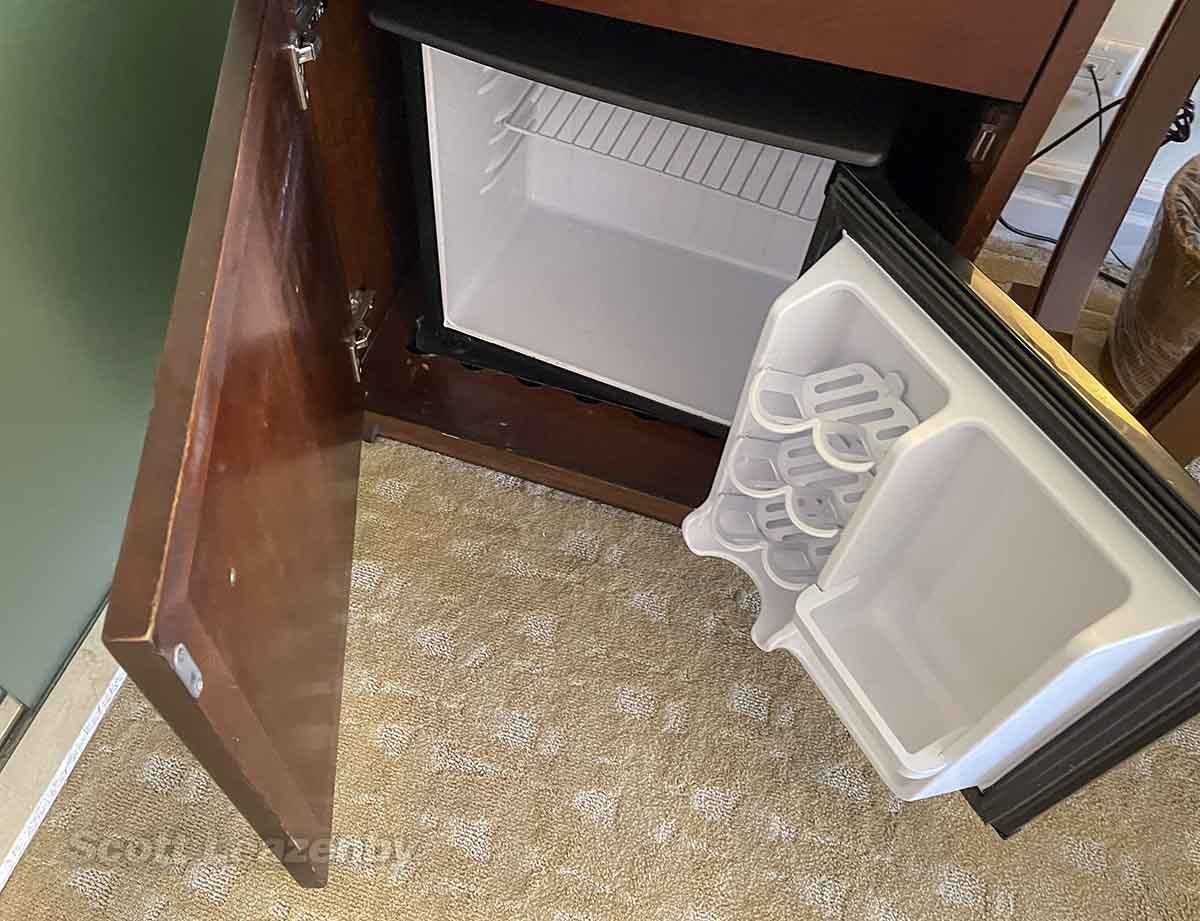 Complementary bottled water is included, as is a Keurig coffee machine with some interesting looking Hawaiian-themed packages of coffee. The in room refrigerator was nice to see as well. BUT – there is no minibar, so if you wanna get lit, you’re gonna have to go downstairs.