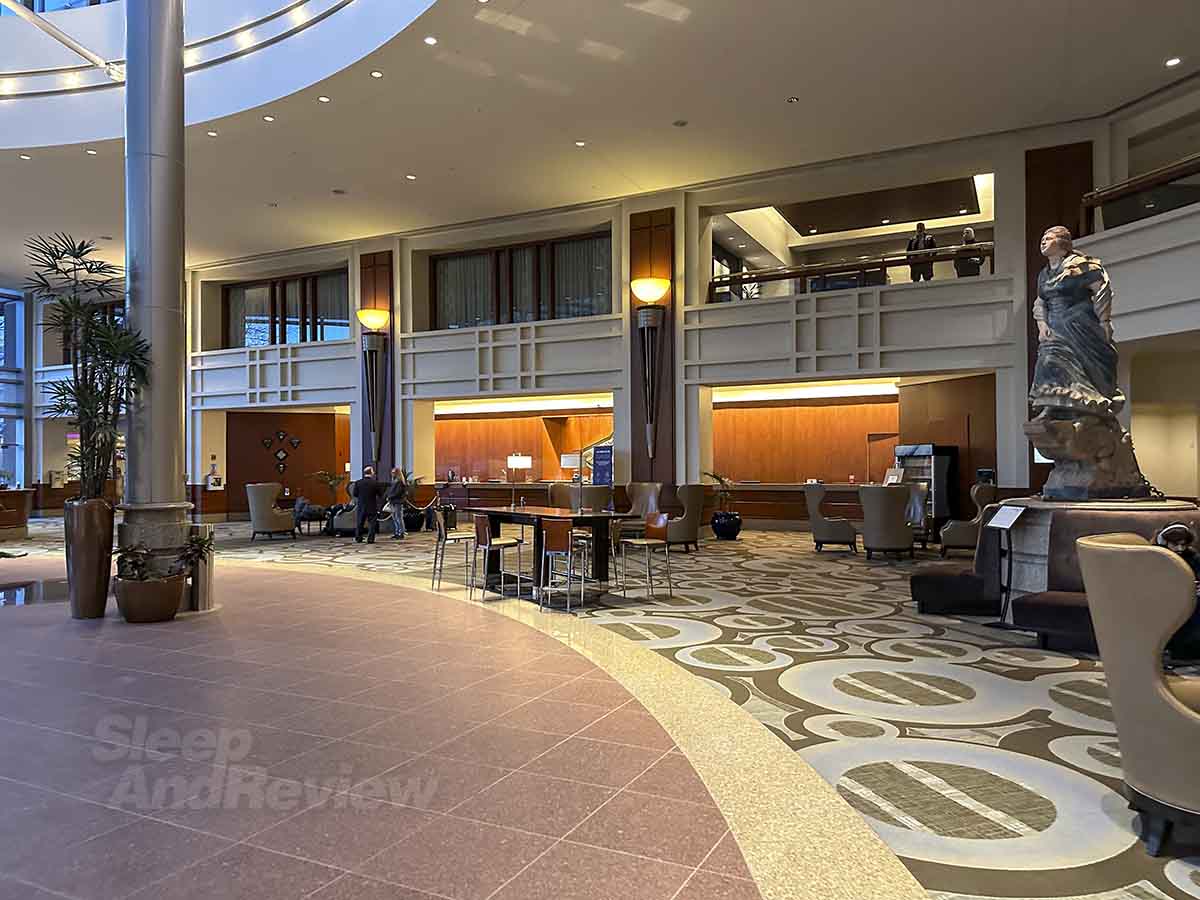 You’ll actually walk through a majority of the ground floor of this property before reaching the lobby if you’re coming from the airport. Once there, you’ll still have some walking to do, as the check-in desk is located on the far west end of the lobby away from everything else. Pro tip: wear comfortable walking shoes.