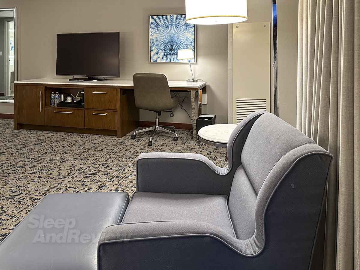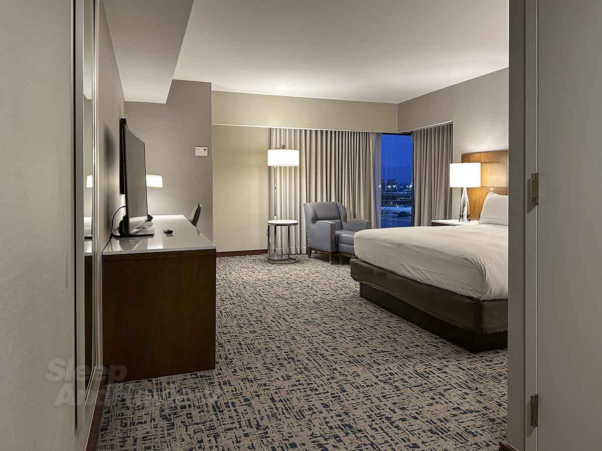 It’s worth noting that choosing a corner room is the usually best option for anyone wanting the most space. I recently chose a corner room at the New Orleans Airport Hilton, and it was just as large as the one you see in these pics. Spacious rooms FTW.