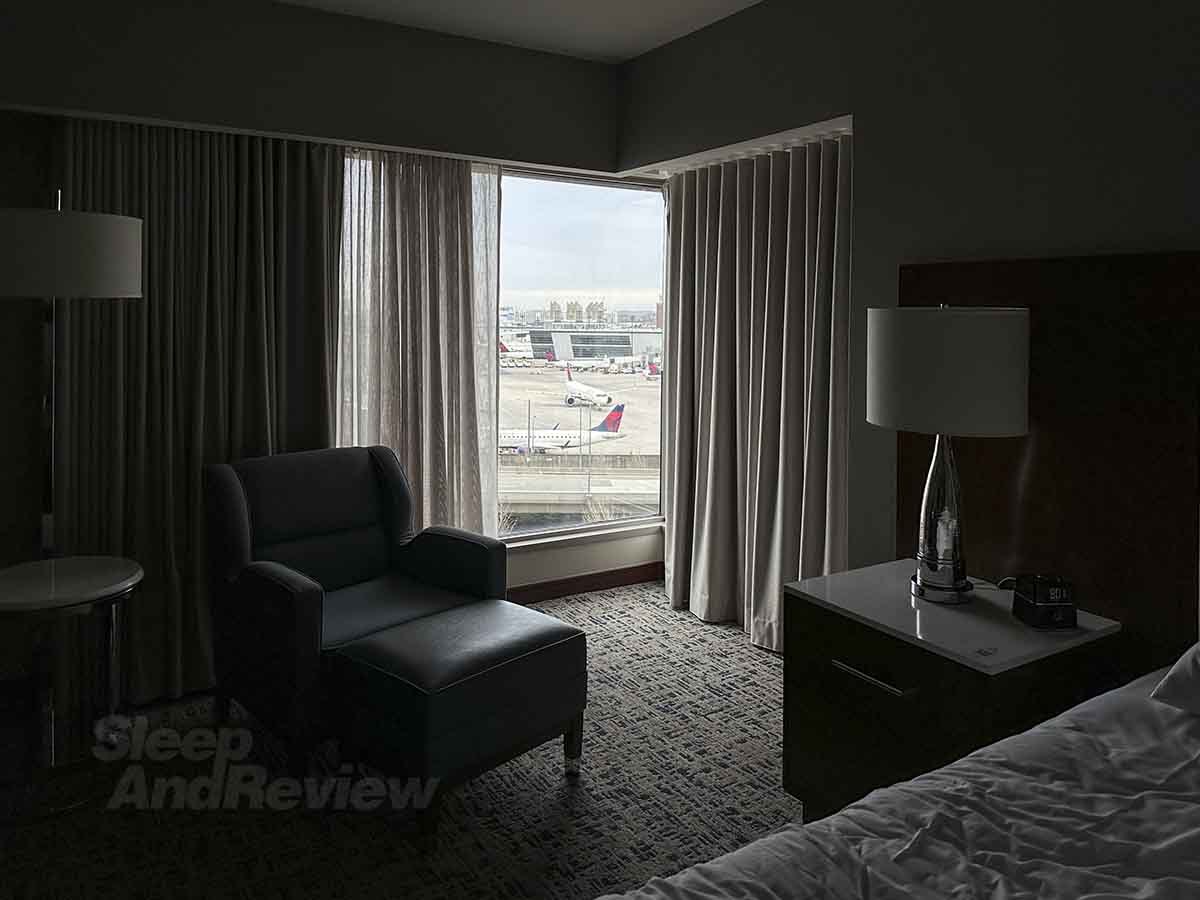 It’s conveniently attached to the airport. It’s clean, fairly quiet, and the views of the city (and the airport) are spectacular. The price can be spectacular as well (see for yourself), but let’s forget about that for a moment and focus on the overall experience instead…
