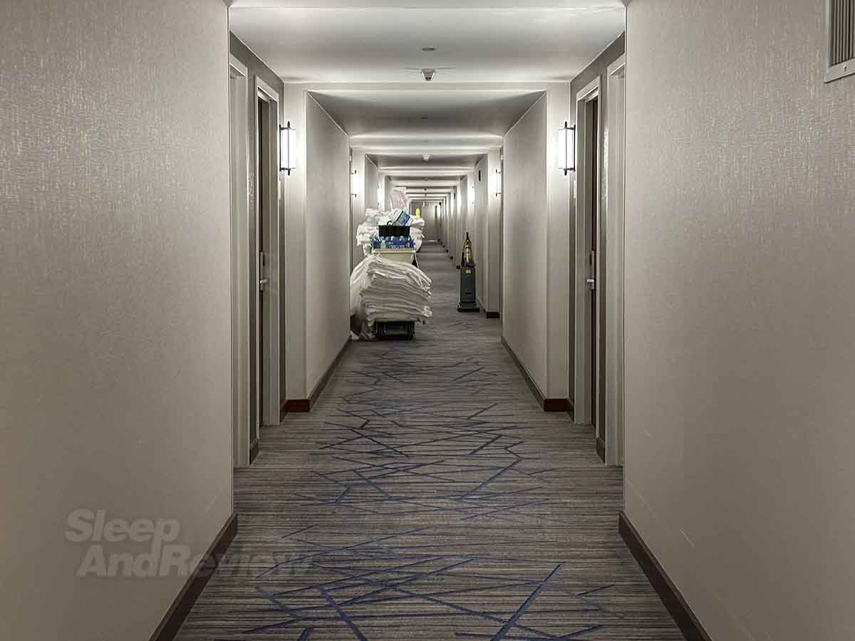 Anyone familiar with Hilton airport hotels aren’t going to be surprised with the majority of the pics in this review. This is very much a Hilton, and it becomes obvious during the sterile and uneventful ride up the elevators. The long walk down the hallways to the guest rooms isn’t any better.