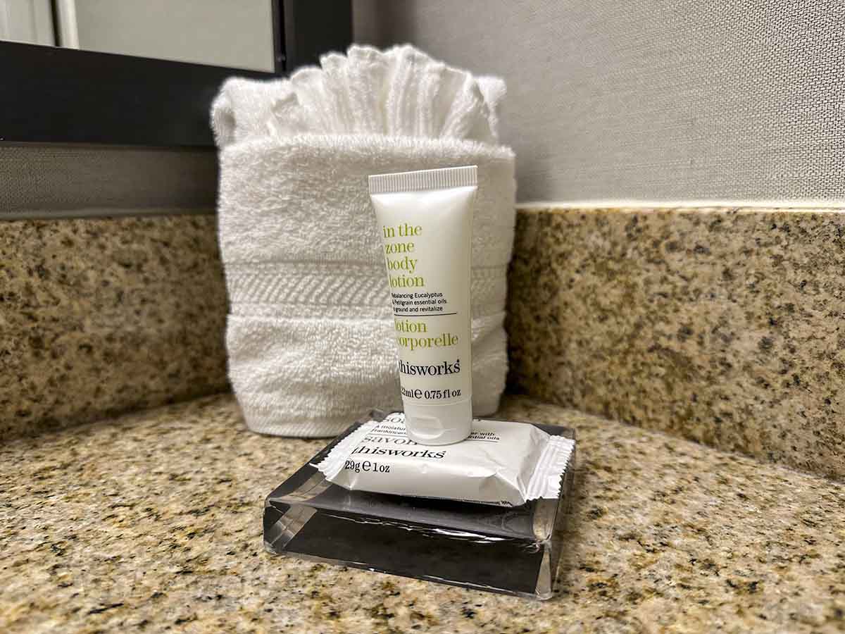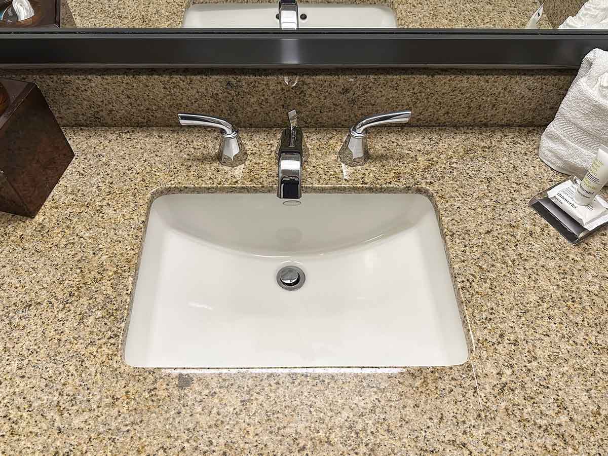 Looks kind of bland, doesn’t it? I do realize that it costs a lot of money to keep hotel bathrooms looking modern, but these are in dire need of an update IMHO. I mean, they don’t need to be as nice as the bathroom you saw in my Calgary Airport Marriott review, but perhaps some semi-modern finishes would be nice.