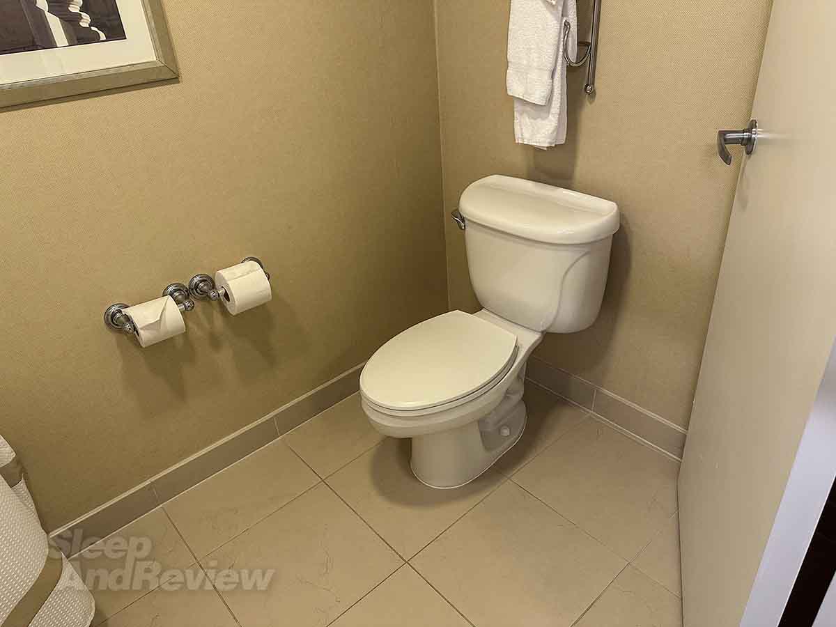 Expecting anything more than a basic bathroom (that hasn’t been updated in the last 10 years) would be foolish of you. Just like the exterior of this hotel, the bathrooms seem to be fairly low priority on their list of things to modernize. I did get lucky by having an “accessible” bathroom in my room this time – and it was hard not to appreciate the extra space.