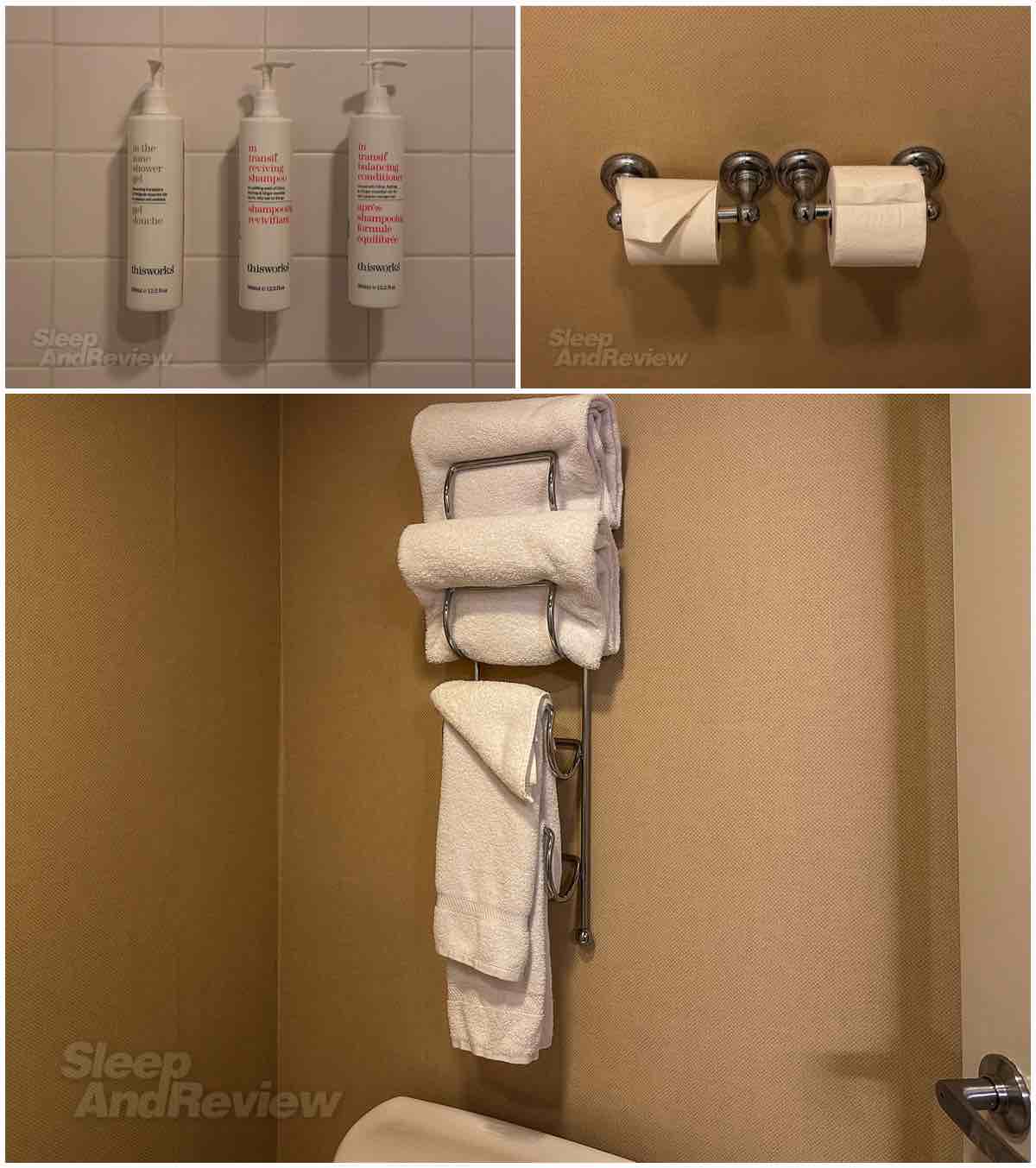While I will never complain about having plenty of soap and two rolls of toilet paper at my disposal, there’s no excuse for thin towels! I was half tempted to dry off with that crusty sock instead…