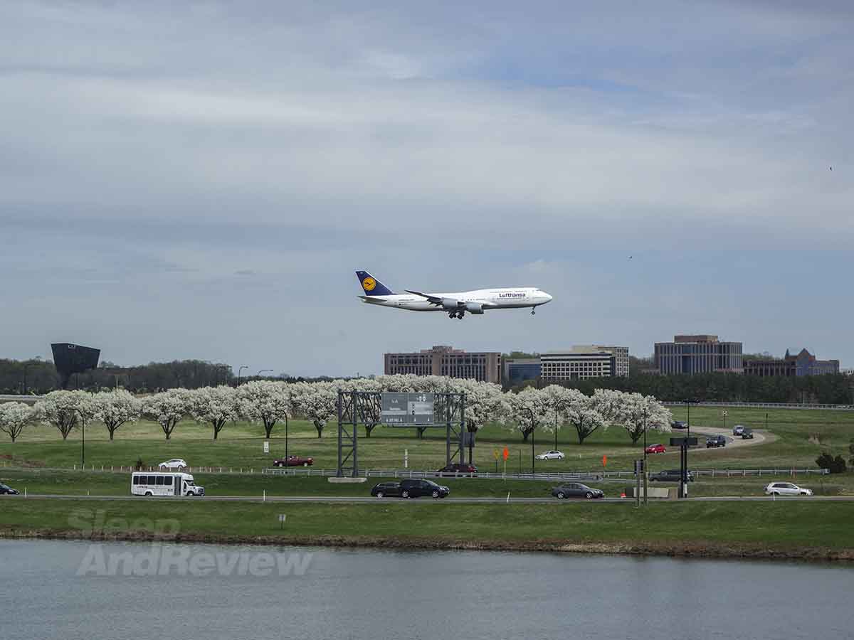 For all you AvGeeks out there, just know that views of landing aircraft are possible from rooms on the second level. I shot this Lufthansa 747-8i landing in the distance from a room I had on the second floor here several years ago (shot with a 105mm lens).