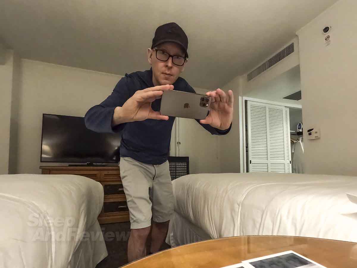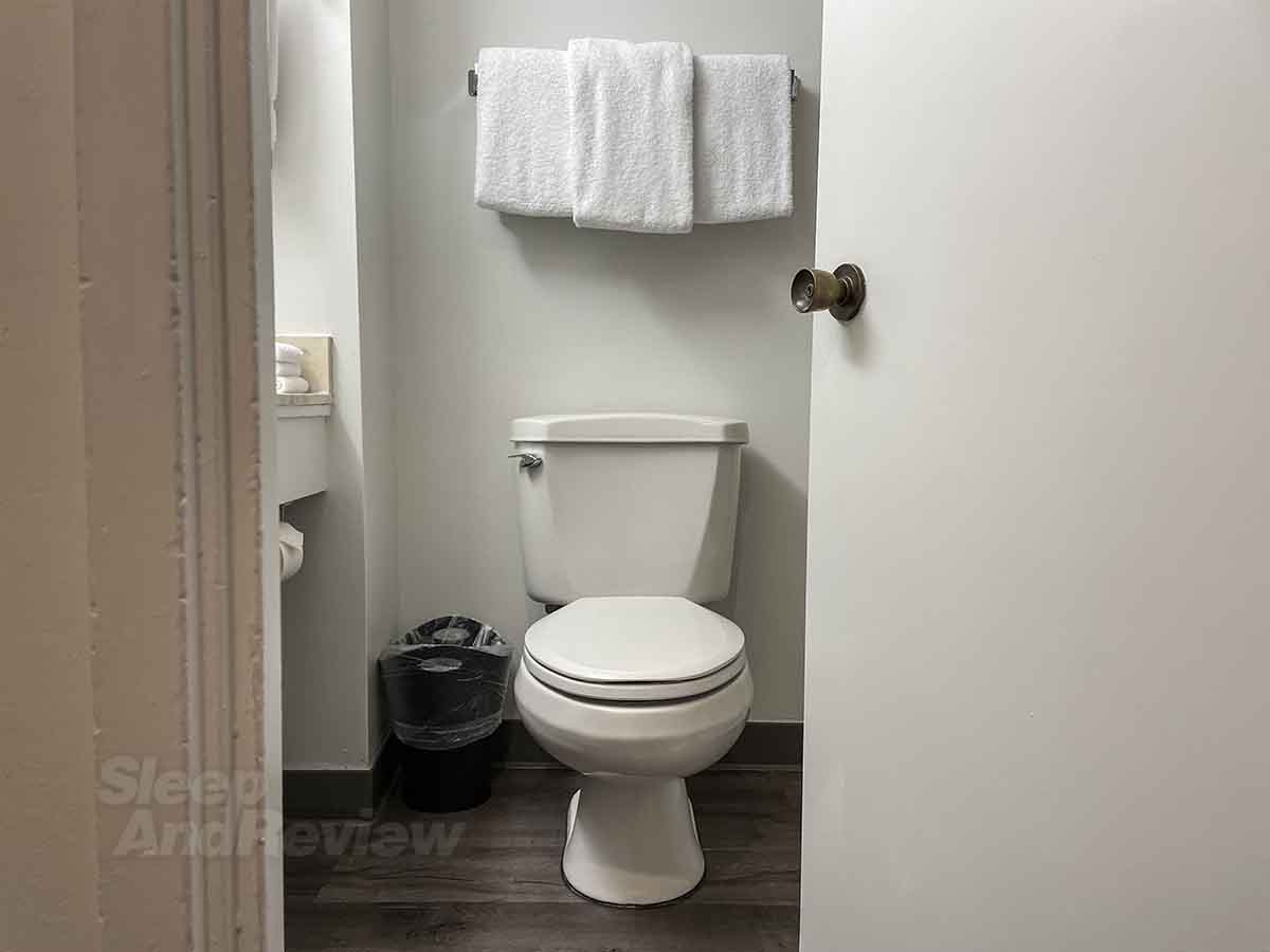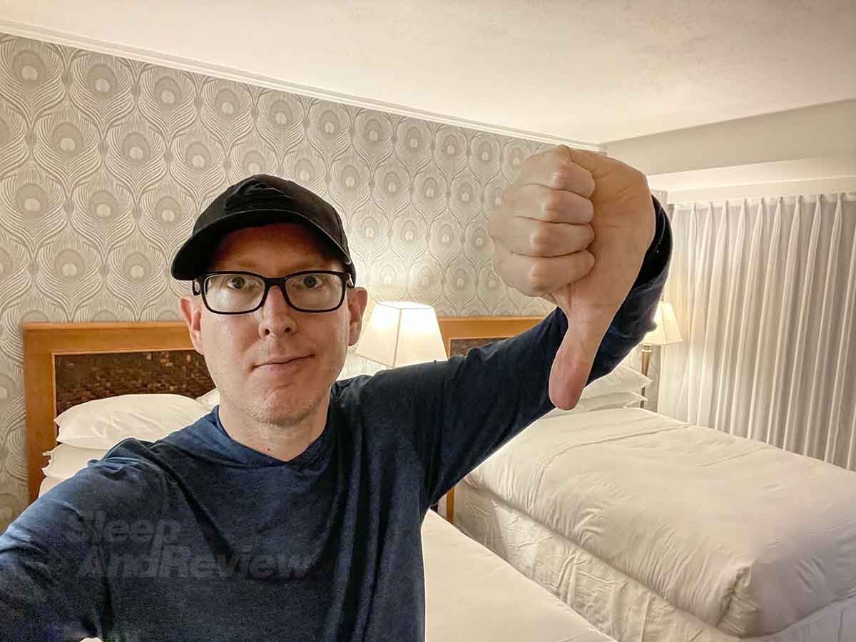 My mood worsened the deeper I walked into this hotel. The elevators are located way back in a dark corner of the lobby, and I was getting that seedy (and somewhat creepy) “cheap hotel” vibe as I pressed the button for floor 16.