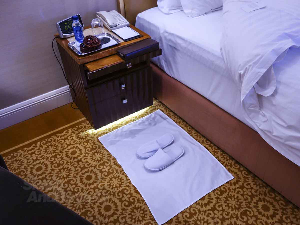 Very nice attention to detail here with the bedside mat and slippers.