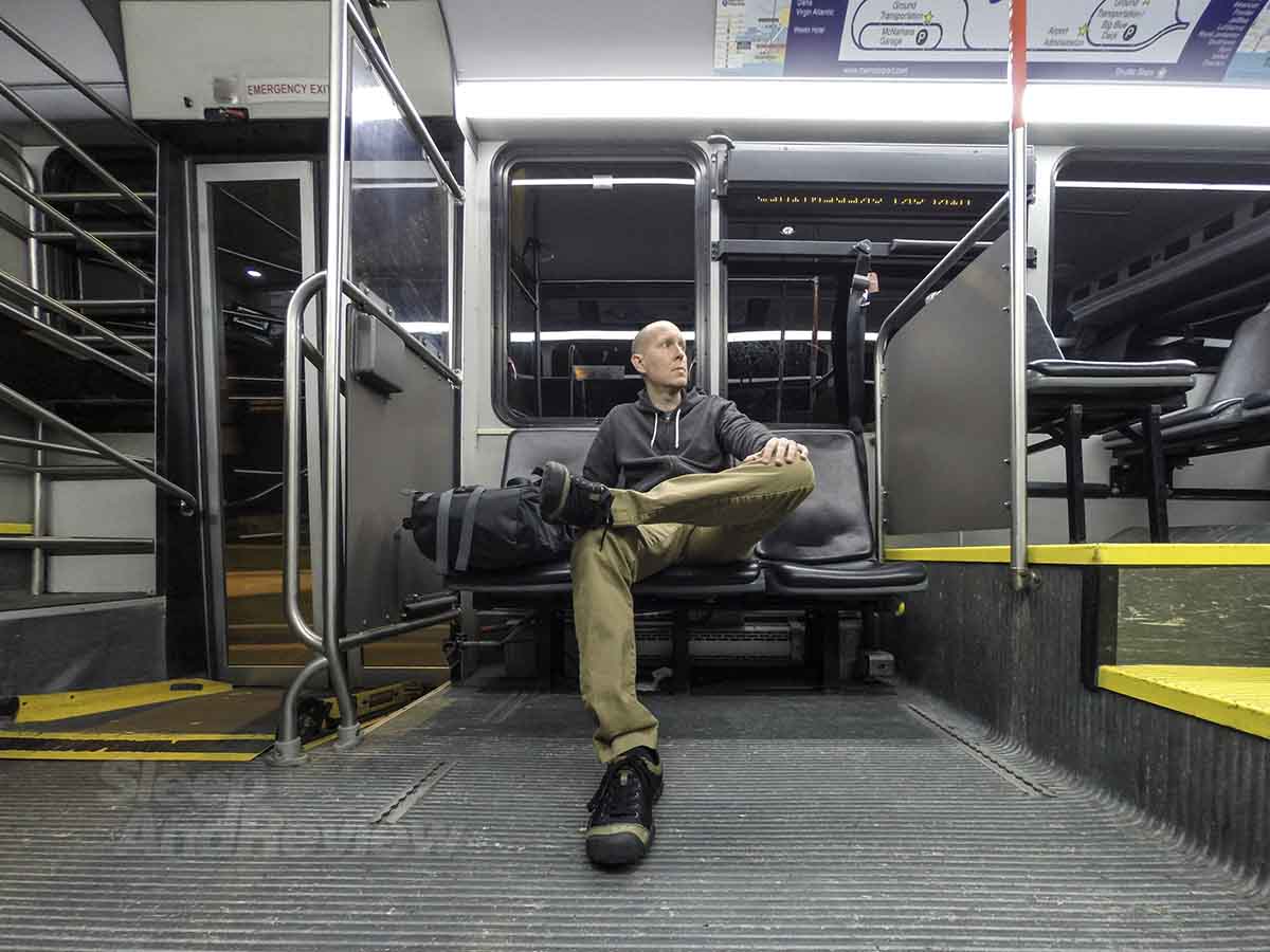 Trying to look cool on a hotel shuttle bus ain’t easy.