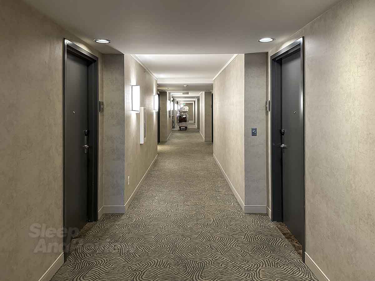 Just when you thought you were safe from things that make you queasy, the carpet here in the guest room hallways probably isn’t going to help much. Personally, I like it.