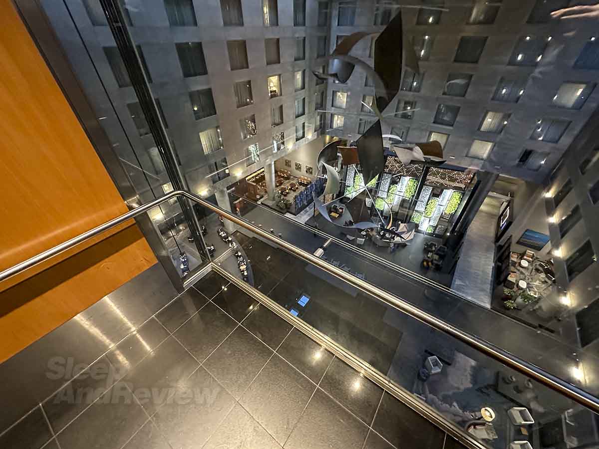 Keep scrolling! If the last pic didn’t give you sweaty palms, this view from the 8th floor looking down on the main lobby surely will.