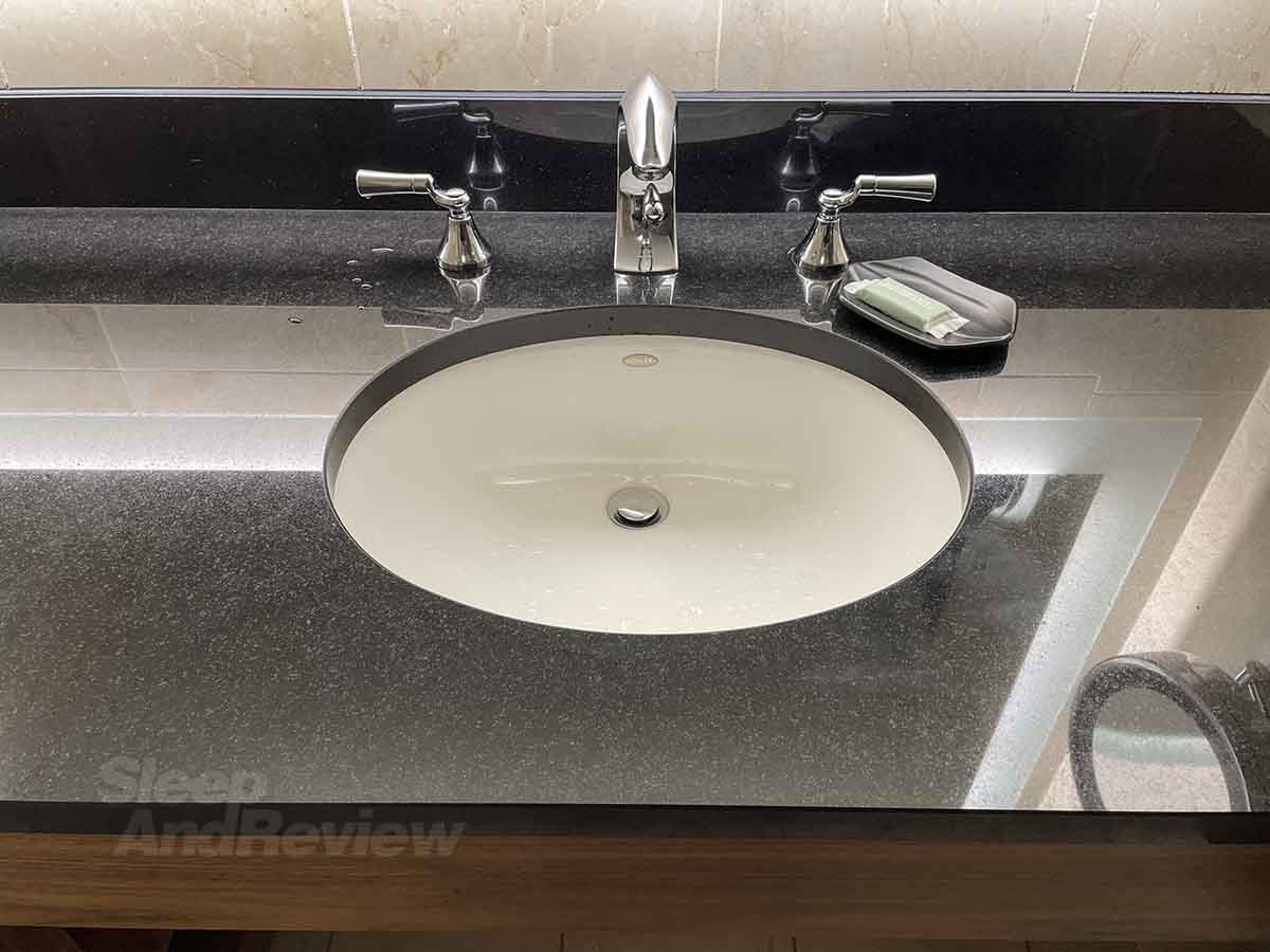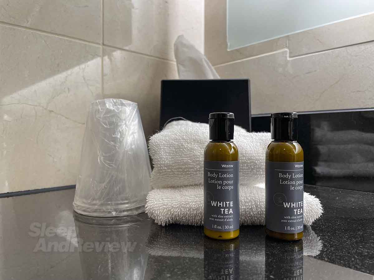 Westin DTW bathroom amenities. There’s not a lot to choose from, but they are still very much appreciated.
